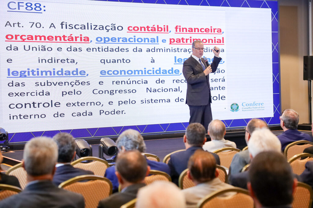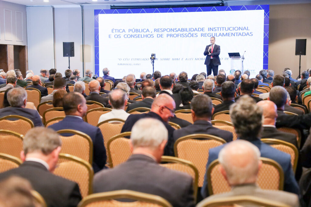 Na sequência, o ministro do Tribunal de Contas da União, Benjamin Zymler, abordou inovação e o uso de inteligência artificial no controle externo, demonstrando como as novas tecnologias vêm aprimorando processos de fiscalização das autarquias profissionais. Ainda pela manhã, o ministro André Luís de Carvalho, também do TCU, discutiu orçamento estratégico e verbas indenizatórias, enfatizando planejamento e responsabilidade administrativa.