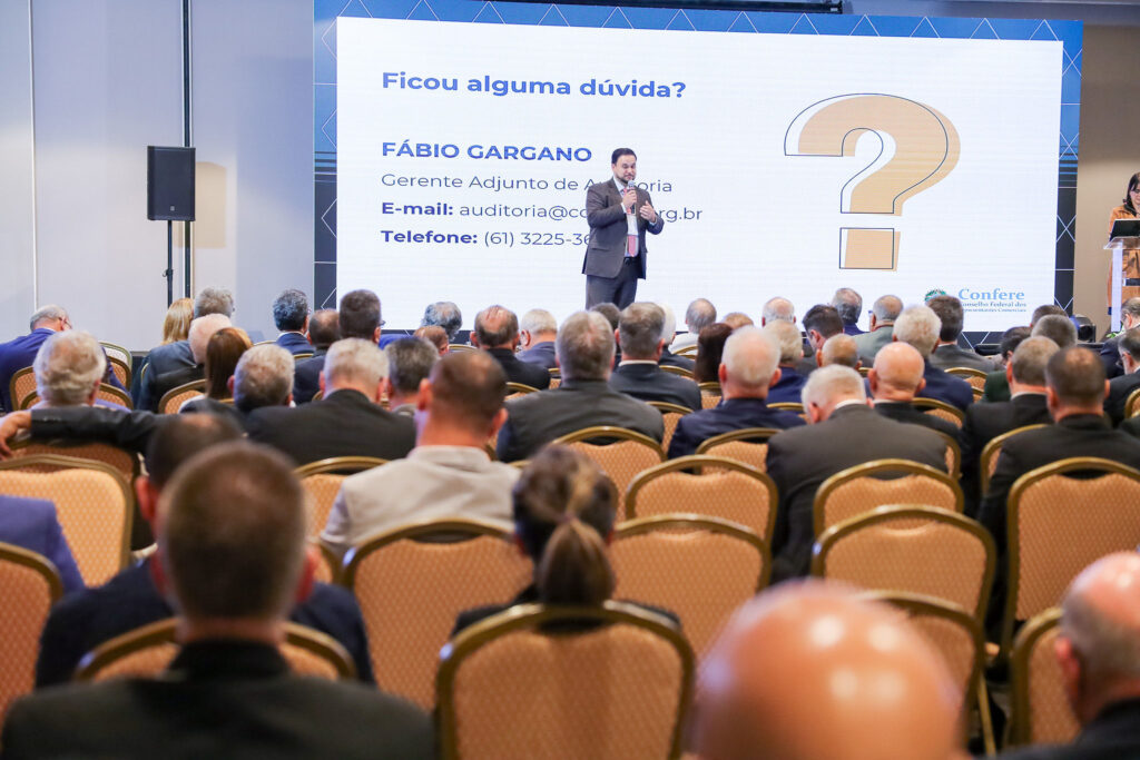 No período da tarde, o gerente de Auditoria do Confere, Fábio da Silva Gargano, apresentou a palestra “Prevenção, Conformidade e Resultado: A Tríade dos Controles Internos Modernos”, reforçando a importância de mecanismos de controle eficientes para segurança e transparência da gestão.